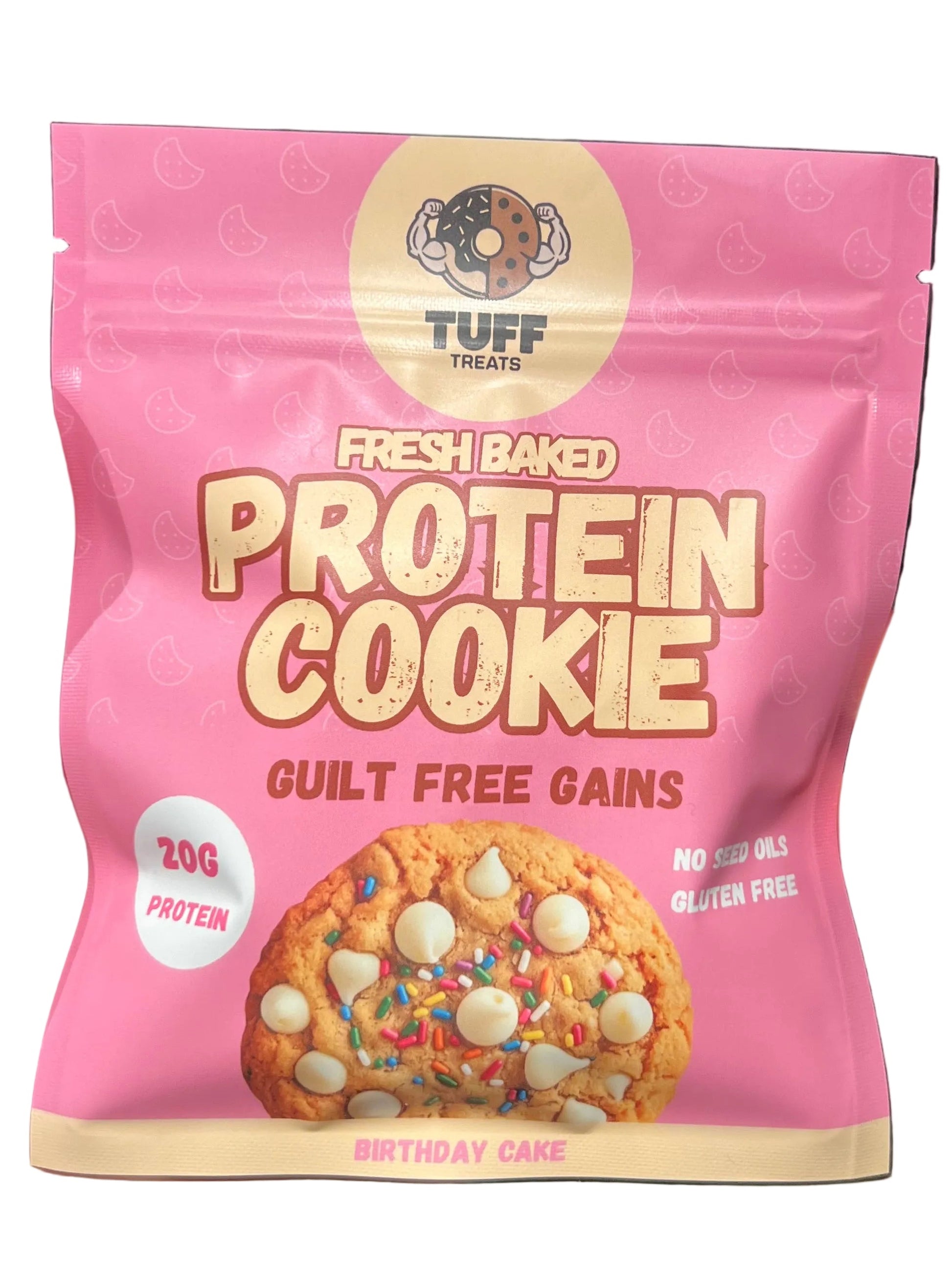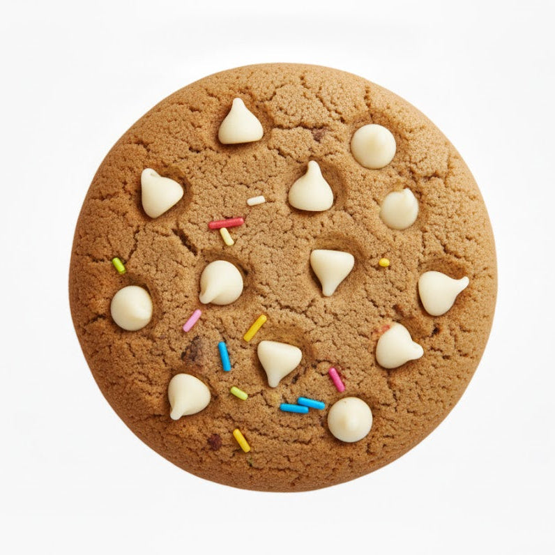 Ingredients: All-natural almond butter, Peanut butter powder, Stevia, Whey-Casein Protein Blend, Egg, Sugar-free white chocolate chips, Rainbow sprinkles