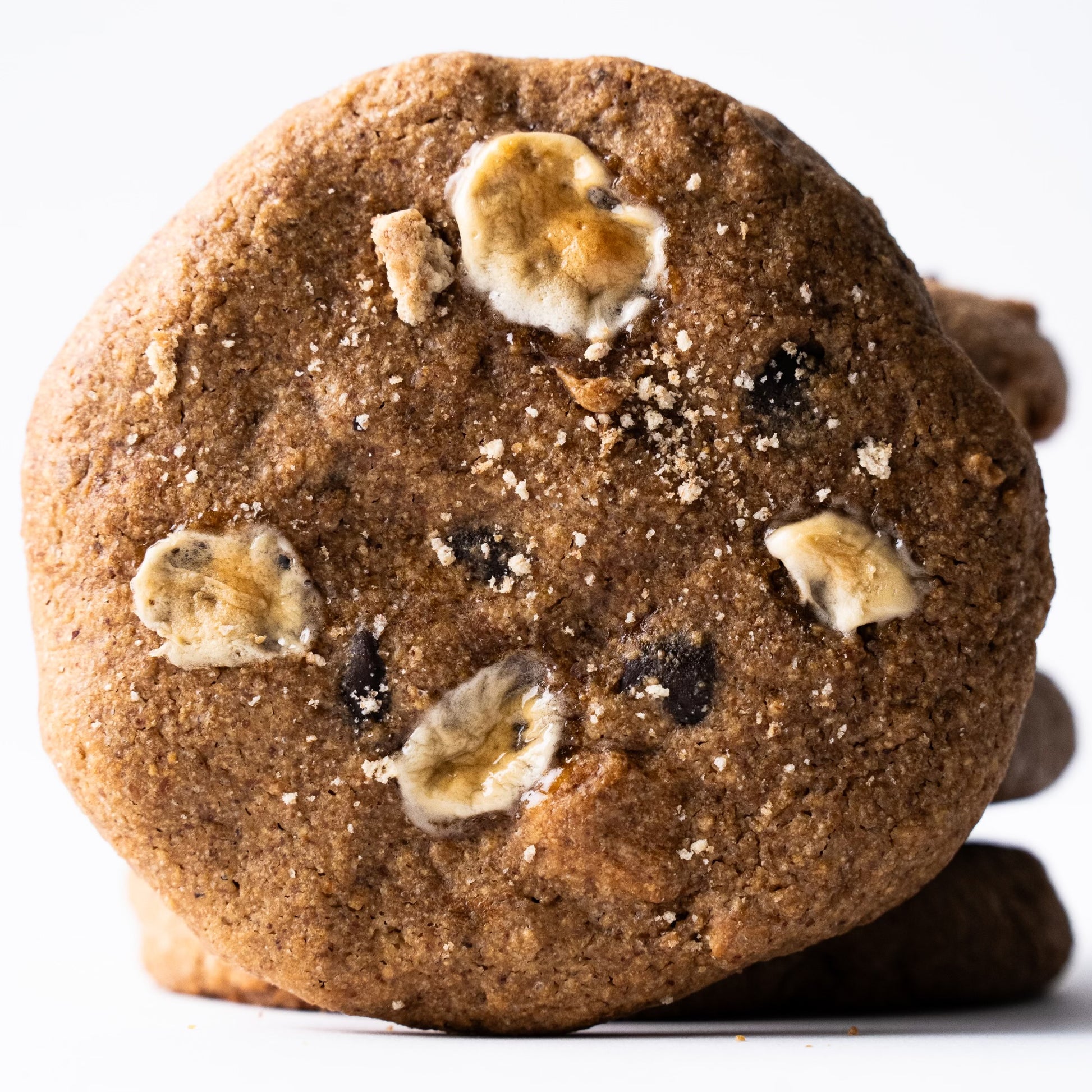 Ingredients: All-natural almond butter, Peanut butter powder, Stevia, Whey Casein Protein Blend, Egg, Sugar-free dark chocolate chips, Sugar-free marshmallows, Graham crackers